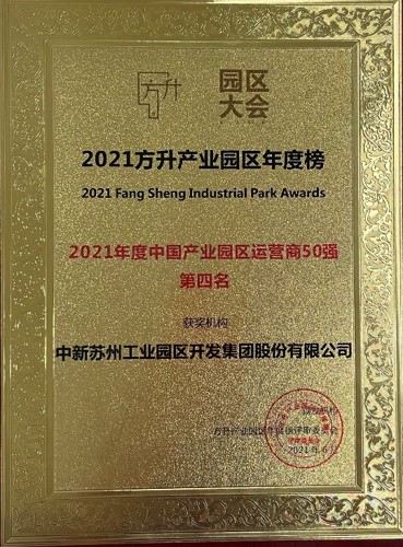 2021園區大會(huì )中國產(chǎn)業(yè)園區運營(yíng)商第四名