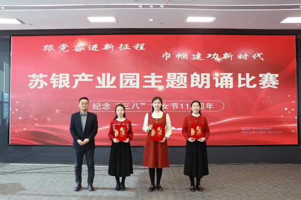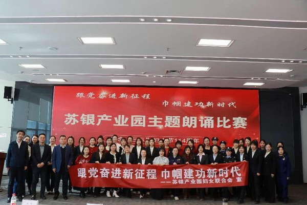 最美三月天,巾幗綻芳華。3月7日,在第114個(gè)“三八”國際勞動(dòng)婦女節來(lái)臨之際,蘇銀產(chǎn)業(yè)園工會(huì )、婦聯(lián)聯(lián)合舉辦了蘇銀產(chǎn)業(yè)園慶?!叭恕眹H婦女節主題朗誦活動(dòng),來(lái)自蘇銀產(chǎn)業(yè)園機關(guān)各部門(mén)、直屬企事業(yè)單位、園區各企業(yè)的15支團體參加比賽。經(jīng)過(guò)激烈角逐,蘇銀公司女職工組成的“巾幗芳華隊”榮獲二等獎。