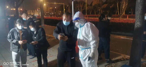 蘇錫通園區當前有80余個(gè)在建工地,共有9000多名施工人員,呈現出人員密集、流動(dòng)性大、食宿集中等特點(diǎn),是園區疫情防控的重點(diǎn)領(lǐng)域。中新蘇通集結規建部所有力量,赴東航光電(江蘇)科技有限公司核酸檢測點(diǎn),配合醫護人員對園區所有施工人員開(kāi)展測量體溫、雙碼查驗等核檢準備工作。在中航光電室外等候區,志愿者指導受檢人員有序進(jìn)入檢測場(chǎng)地,針對健康碼和行程碼顯示有困難的人員,予以幫助指導。