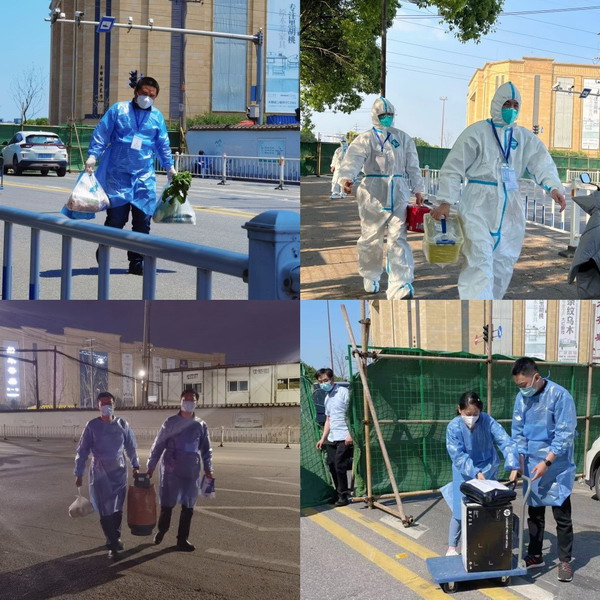 中新嘉善第一時(shí)間組建志愿者服務(wù)隊,擔負起駐守嘉善縣魏塘街道香山社區“三區”卡口的重任。志愿者從早上6點(diǎn)到晚上11點(diǎn),分三班輪值,扛起服務(wù)“三區”居民的任務(wù)。中新嘉善志愿者擔負起卡口與小區門(mén)口之間“最后一公里”的物資轉送工作,將物資送到小區門(mén)口,再由內部防疫人員和志愿者負責接收、派送。除了往“前線(xiàn)”運送民生物資外,志愿者們還接手了核酸樣品的轉運工作,保證每日“三區”核酸檢測樣品第一時(shí)間送達指定接收單位。