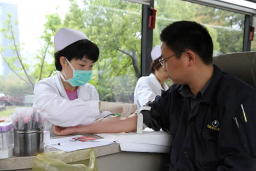 2013年4月23日上午,中新公用旗下蘇州工業(yè)園區清源華衍水務(wù)有限公司和中新蘇州工業(yè)園區環(huán)保技術(shù)有限公司聯(lián)合蘇州市中心血站開(kāi)展無(wú)償獻血活動(dòng)。獻血活動(dòng)持續2個(gè)半小時(shí)。據統計,當天共有76位員工參與獻血,73位員工采血成功,獻血量約16400ml。
