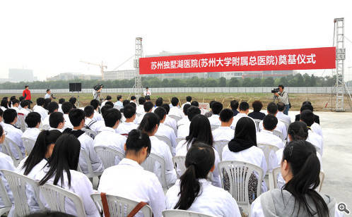蘇州獨墅湖醫院(蘇州大學(xué)附屬總醫院)位于工業(yè)園區崇文路以南,創(chuàng )苑路以北,松濤街以東,雪堂街以西,總占地面積約234.44畝。醫院總床位1500張,總建筑面積16萬(wàn)平方米。按照“一次規劃、分期實(shí)施”的原則,建設門(mén)急診大樓、住院部一期800張床位以及各類(lèi)輔助建筑設施等,共12萬(wàn)平方米。獨墅湖醫院是以蘇大各附屬醫院重點(diǎn)學(xué)科為基礎和依托,以腫瘤、重癥醫學(xué)、消化系學(xué)科為重點(diǎn),以整形、五官、皮膚等為特色,強專(zhuān)科、小綜合,機制和管理創(chuàng )新、醫教研結合的現代化醫院。醫院將建設成為“國內一流、國際知名”的高水平臨床診療中心、高質(zhì)量醫學(xué)人才培養基地、高水平醫學(xué)研究轉化平臺。