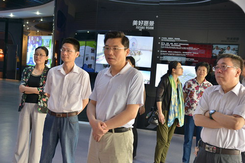 5月27日上午,安徽省科技廳副廳長(cháng)劉明平一行參觀(guān)園區規劃展廳,詳細了解蘇滁園區項目合作背景、規劃、建設、招商等方面進(jìn)展情況。蘇滁園區黨工委委員、國土規劃局局長(cháng)張亞陪同。