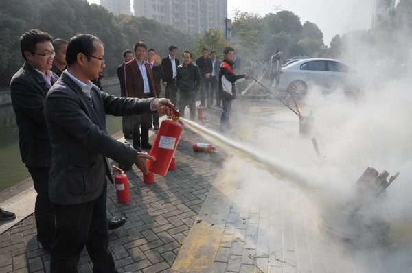 11月17日,中新公用組織實(shí)施了蘇虹大樓消防演習。14:00,消防警鈴響聲大作。根據預案,三分鐘內,樓內人員均通過(guò)最近的安全通道疏散至停車(chē)場(chǎng)。集中清點(diǎn)完人數后,消防機構專(zhuān)業(yè)人員向大家講解了干粉滅火器的使用方法。中新公用、租戶(hù)及物業(yè)管理處部分員工代表實(shí)際操練了初起火災的撲滅。