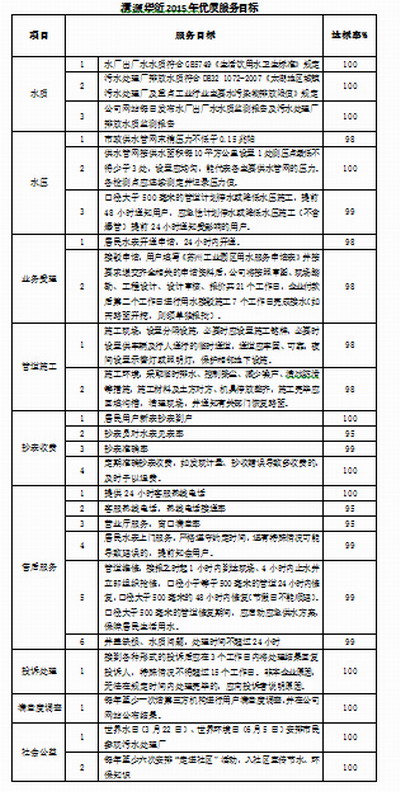 為城市提供安全穩定高效的公用事業(yè)產(chǎn)品和服務(wù),是我們的重要使命?!?•15”國際消費者權益日前夕,中新公用旗下蘇州工業(yè)園區清源華衍水務(wù)有限公司、蘇州港華燃氣有限公司發(fā)布2015年度服務(wù)目標,接受用戶(hù)監督。