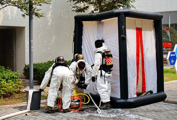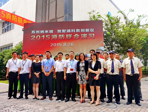 蘇州獨墅湖科教創(chuàng )新區管委會(huì )、蘇州納米科技發(fā)展有限公司、蘇州工業(yè)園區公安消防大隊、獨墅湖科教創(chuàng )新區永安橋派出所、獨墅湖科教創(chuàng )新區交巡警中隊、獨墅湖科教創(chuàng )新區城管中隊、獨墅湖科教創(chuàng )新區醫院、中新蘇州和喬物業(yè)服務(wù)有限公司及入駐蘇州納米城的部分企業(yè)聯(lián)合參與了演練,獨墅湖科教創(chuàng )新區內130多家企業(yè)安全管理負責人共同在現場(chǎng)觀(guān)摩了演練。