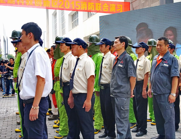 8月26日下午,蘇州納米城暨獨墅湖科教創(chuàng )新區2015年消防演練在蘇州納米城舉行,旨在讓區內企業(yè)深入了解化學(xué)品事故應急處理,熟悉化學(xué)品火災處置的基本原則,提高安全防范意識。作為服務(wù)蘇州納米城的物業(yè)管理單位,中新和喬全程配合、有條不紊,義務(wù)消防隊員訓練有素,工作人員疏散及時(shí),有效保證了演練的順利實(shí)施。