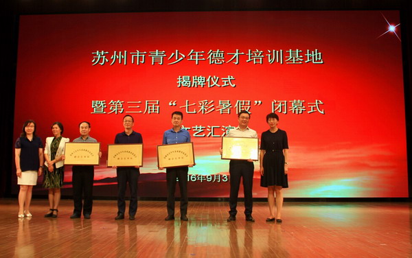 9月3日下午,蘇州市青少年德才培訓基地揭牌儀式暨第三屆“七彩暑假”閉幕式文藝匯演在蘇州第一中學(xué)舉行,蘇州廣播電視總臺、中國銀行蘇州分行、蘇州銀行總行、中新蘇州工業(yè)園區置地有限公司被授牌“蘇州市青少年素質(zhì)教育促進(jìn)會(huì )副會(huì )長(cháng)單位”。這是中新置地加快體育產(chǎn)業(yè)發(fā)展步伐,整合資源促進(jìn)跨界融合,在新興產(chǎn)業(yè)布局上邁出的關(guān)鍵一步。以此為契機,公司將加強基地建設,發(fā)揮載體功能,著(zhù)力推動(dòng)青少年德才培訓項目在園區的落地,促進(jìn)科技創(chuàng )新教育的普及化、公益化。