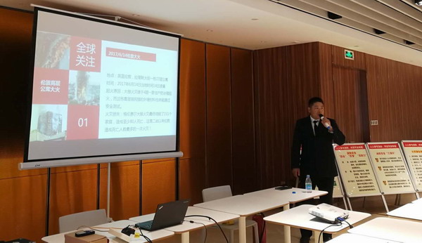 中新集團于今年4月份搬遷至獨墅湖月亮灣路中新大廈,中新大廈整體建筑49層,總高度228米,屬于“超高層建筑”。在這次培訓中,培訓人員結合近幾年國內外典型的高層建筑火災案例,利用事故現場(chǎng)圖片,以案說(shuō)法,向大家認真講解火災發(fā)生原因、特點(diǎn)及防范措施。同時(shí),培訓人員還重點(diǎn)介紹高層建筑火災特點(diǎn)和災害成因、中新大廈消防設施配置、消防器材使用和逃生自救的方法等,并且現場(chǎng)講授滅火器和火災逃生面具的使用方法。