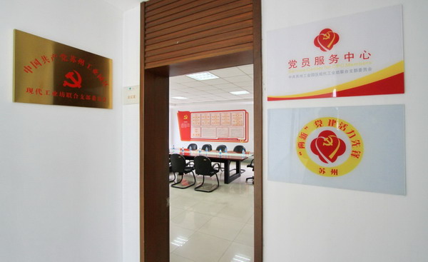 在嶄新的黨員服務(wù)中心里,醒目的門(mén)頭標識,敞亮的辦公室,鮮紅的黨旗,還有版式統一的上墻展板,詳細地列明了組織架構、組織生活程序等圖示內容。在中新集團黨委的支持下,現代工業(yè)坊和喬物業(yè)管理處的204會(huì )議室煥然一新,由園區嘉都設計營(yíng)造公司按照園區黨建形象模板完成了氛圍布置。