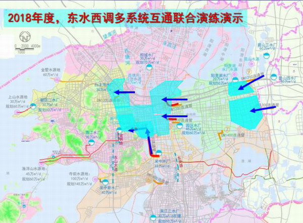 蘇州市飲用水源地主要集中在長(cháng)江和太湖,分成9個(gè)獨立的供水片區。為提升各市區抗風(fēng)險能力,近日,蘇州組織全市供水系統開(kāi)展組團式互聯(lián)互通供水應急實(shí)戰演練,共有6家供水企業(yè)、12個(gè)水廠(chǎng)、7處互連互通管參與。通過(guò)“東水西調”,實(shí)現長(cháng)江與太湖水源的互備互用和清水互通,這樣大規模的演練在全省乃至全國尚屬首次。