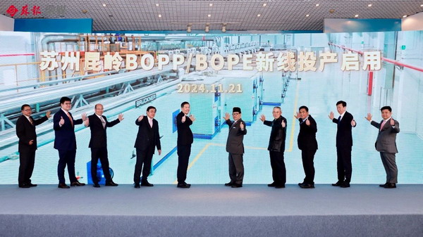 持續看好蘇州,不斷增資擴產(chǎn)。今年是蘇州昆嶺薄膜工業(yè)有限公司開(kāi)業(yè)二十周年,11月21日,蘇州昆嶺BOPP/BOPE新產(chǎn)線(xiàn)投產(chǎn)啟動(dòng)儀式在蘇州工業(yè)園區舉行。印度尼西亞駐華大使周浩黎、蘇州市委書(shū)記劉小濤、中國僑聯(lián)顧問(wèn)喬衛出席活動(dòng)。
