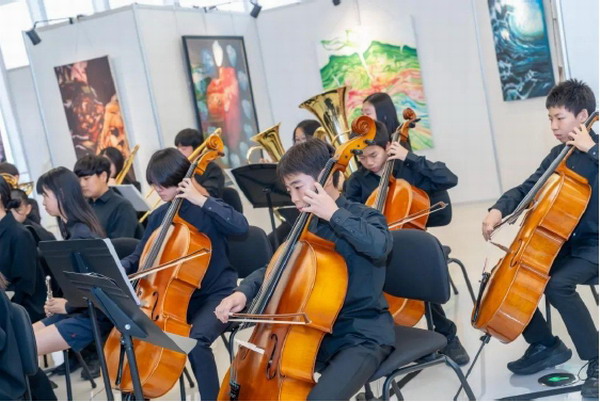 展覽開(kāi)幕式上,由52名來(lái)自不同國家的學(xué)生奏起的交響幻想曲《MedievalLegend》,與展廳內的光影裝置形成通感體驗,這種多維度藝術(shù)呈現方式得益于SSIS藝術(shù)教育部門(mén)開(kāi)設涵蓋視覺(jué)藝術(shù)、音樂(lè )、舞蹈及戲劇的全面課程體系。這種跨學(xué)科創(chuàng )作模式,讓作品不僅僅停留在技法展示上,更成為學(xué)生通過(guò)不同藝術(shù)載體表達自我的通道。